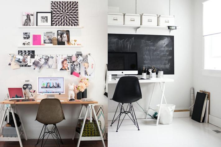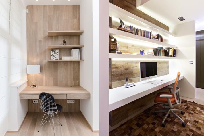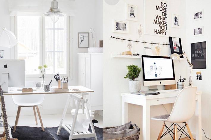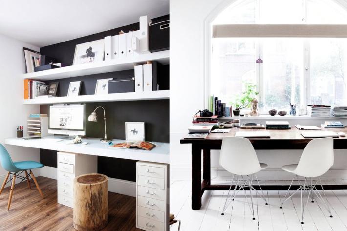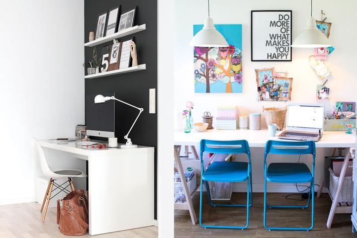 Lo más importante es elegir el espacio. Lo mejor es reservar una habitación para crear un estudio, pero si esto no es posible, se debe buscar un rincón para poner la zona de trabajo, ya sea en un rincón de la habitación, en la sala de estar, o incluso en el recibidor. En caso de que el espacio de trabajo acabe siendo un rincón de otra estancia, es primordial delimitarlo con objetos para preservar el lugar como espacio de trabajo en sí.