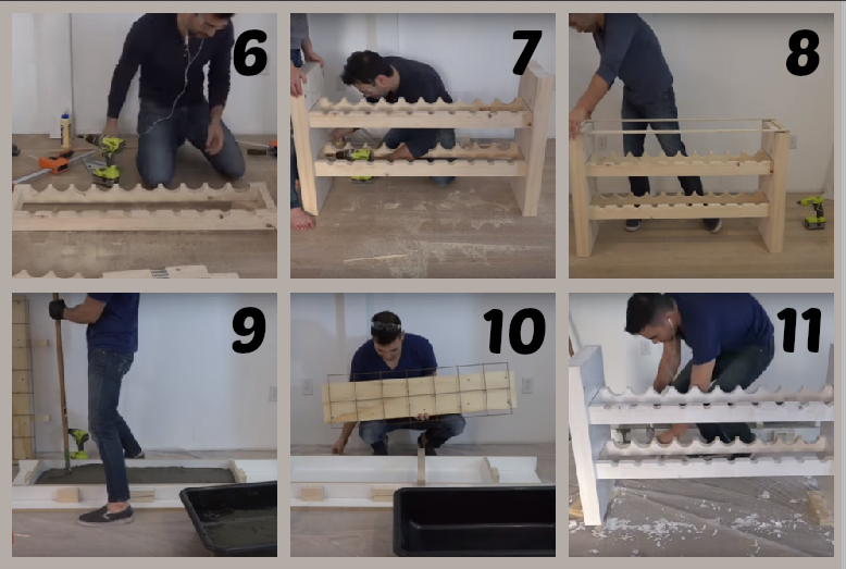 10. A continuación, tenemos que tener ya lista una forma rectangular de madeja adjunta a una rejilla, que será lo que metamos dentro de esta masa de quikrete para rellenar la parte de dentro y que no quede huecos. para mayor eficacia podemos usar un sellador de madera. Cuando lo tengamos ya dentro, dejamos peso para que se seque bien ya que tarda unos días.