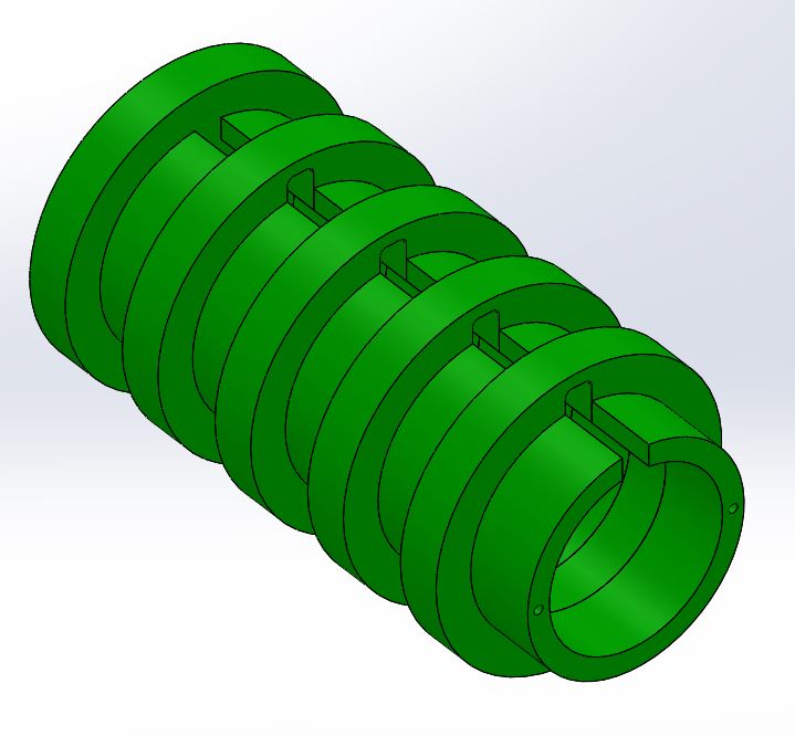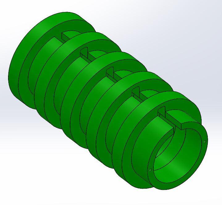 Cilindro exterior: Tiene que encajar con el cilindro interior, y tiene las ranuras para que se puedan desplazar las pestañas y poder separar los dos cilindros.