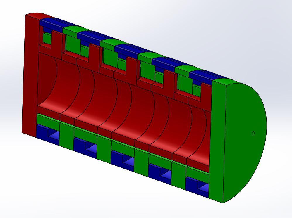 A continuación os enseño una sección longitudinal del ensamblaje completo: