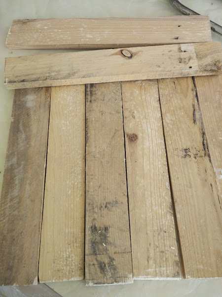 El siguiente paso es quitar con ayuda de un martillo las maderas del palet, marcamos las medidas, y con un serrucho o sierra eléctrica cortar las maderas. Con la lijadora lijamos muy bien las maderas de impurezas por todas las caras. Pasamos un trapo húmedo para limpiar las madera de polvo y suciedad y dejamos secar. Una vez seco, debemos pegar las maderas, con silicona o un adhesivo potente, en este caso no use clavos ni tornillos por que la madera es muy ligera y el adhesivo es suficiente para fijarlas. Con esto acabamos de montar nuestro " lienzo de madera" y solo queda pintar.
