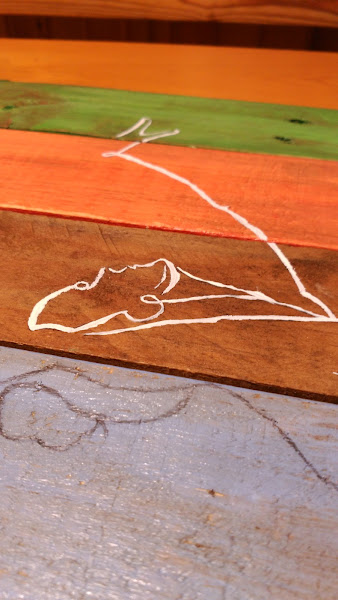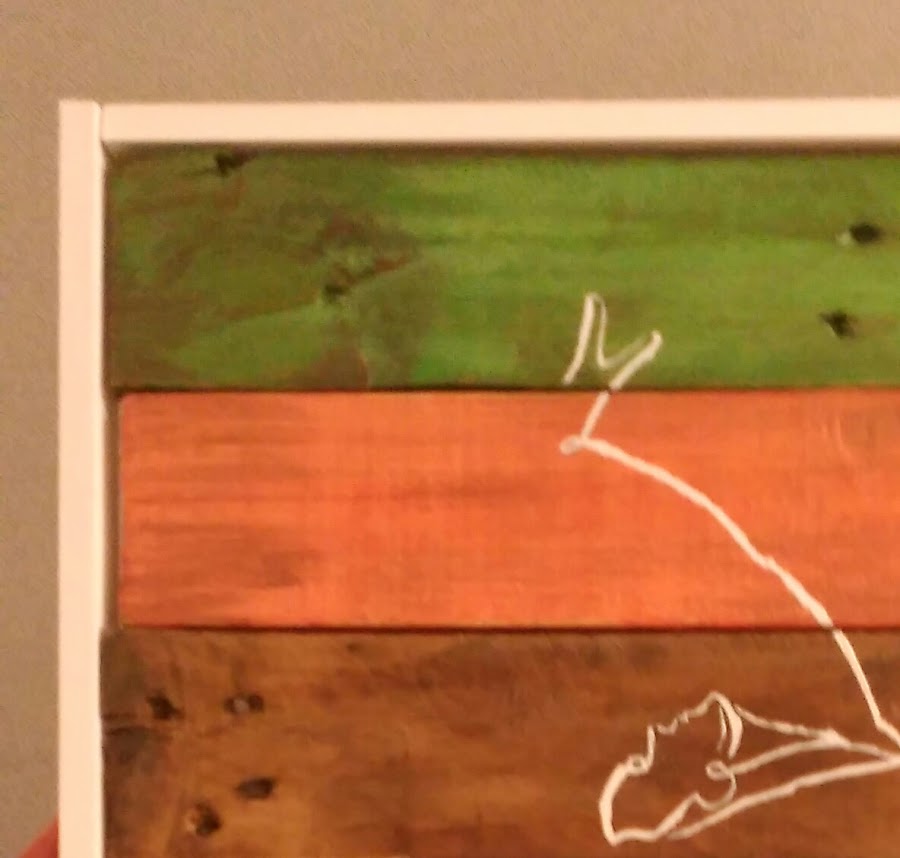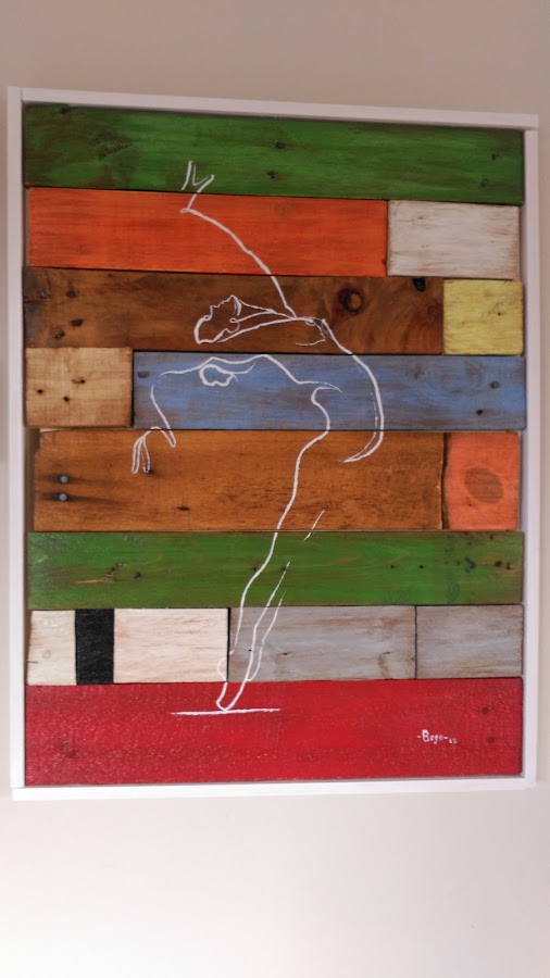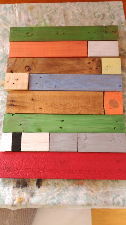 Se trata de un cuadro cuya base, o lienzo, son unas lamas de palé. Eran trozos de lamas que tenía guardadas, como siempre, "por si acaso".