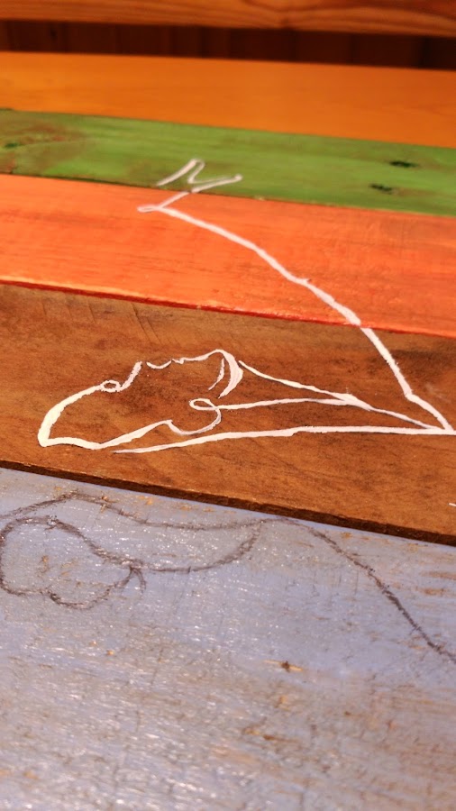 Con unos calcos la pasé a lo que sería el cuadro. Y lo remarqué con pintura blanca.