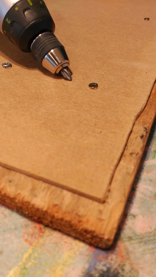 Finalmente le hice el marco con un listón cortado en trozos a la medida y pintado en blanco. Y los tirafondeé a las maderas.