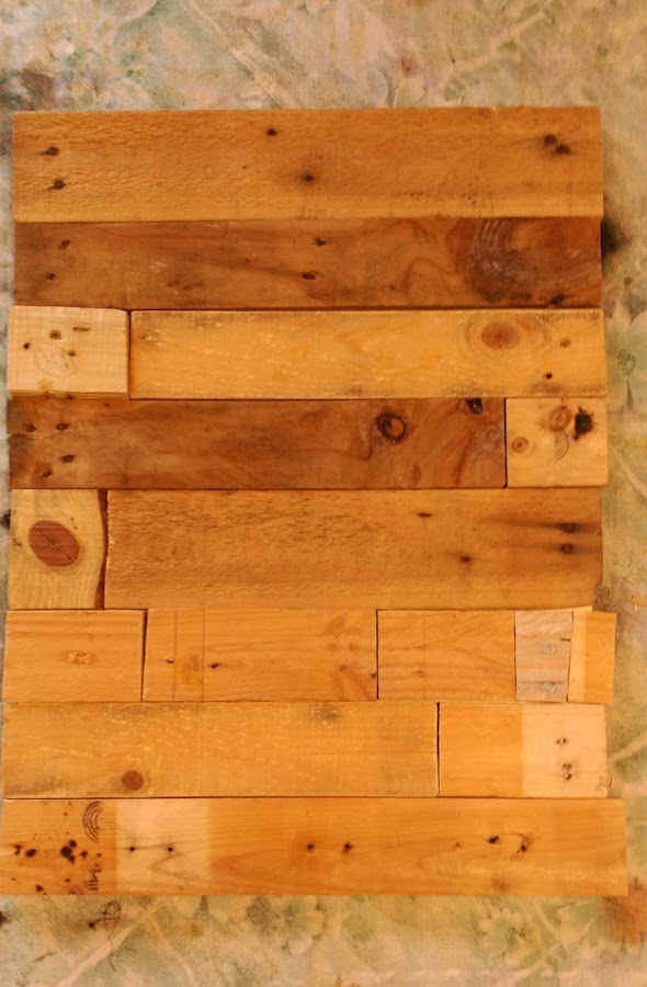 Lo primero fue decidir las medidas del cuadro y cortar la base a esa medida. Después adaptaría las lamas a la base, combinándolas y en algún caso cortándolas.