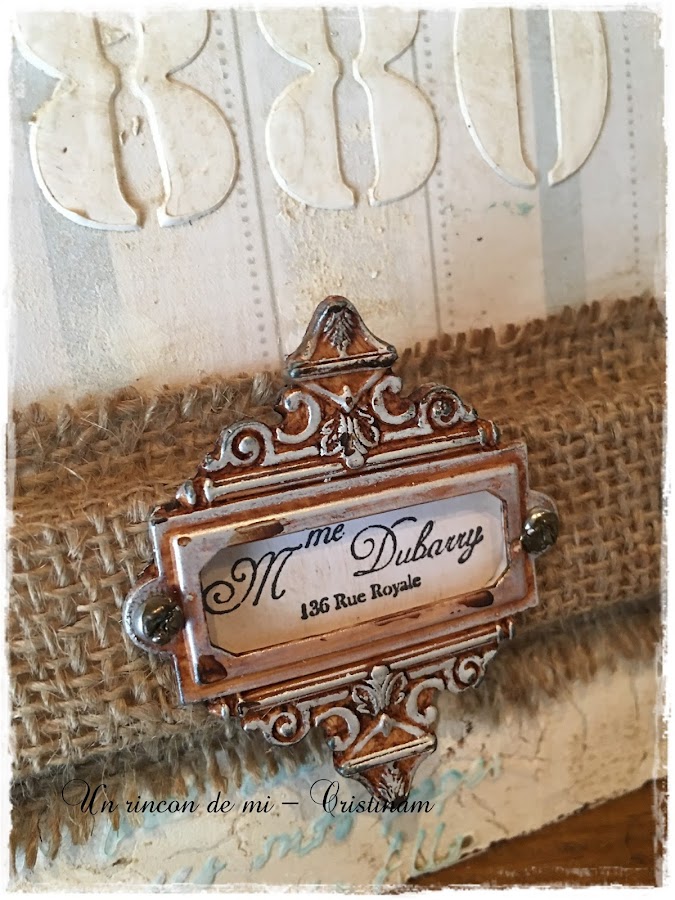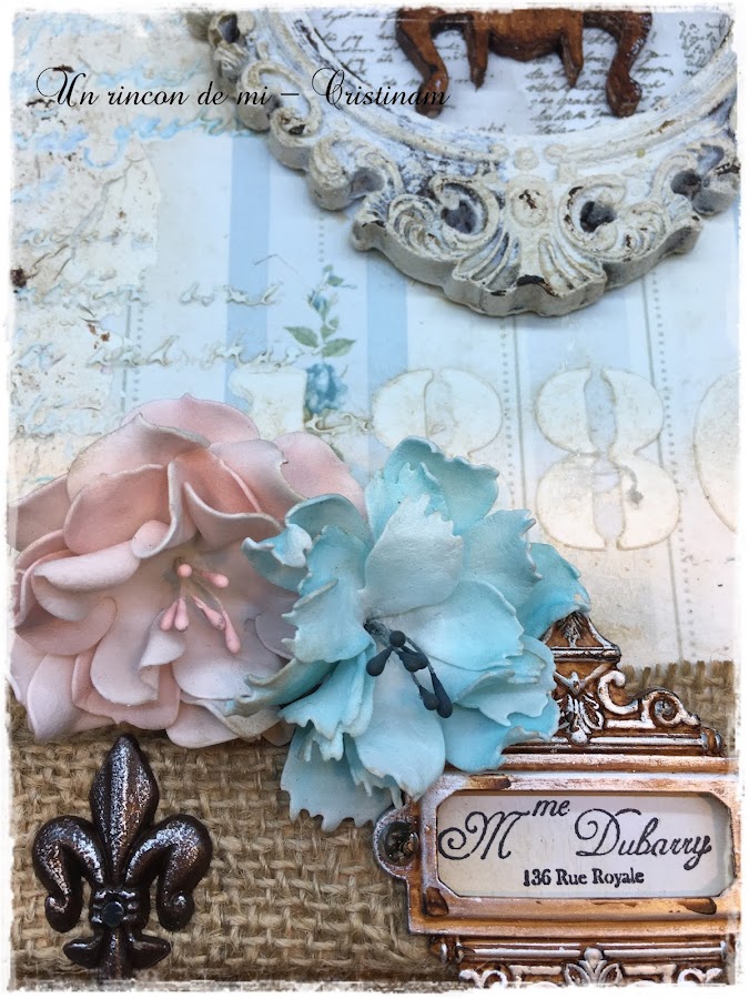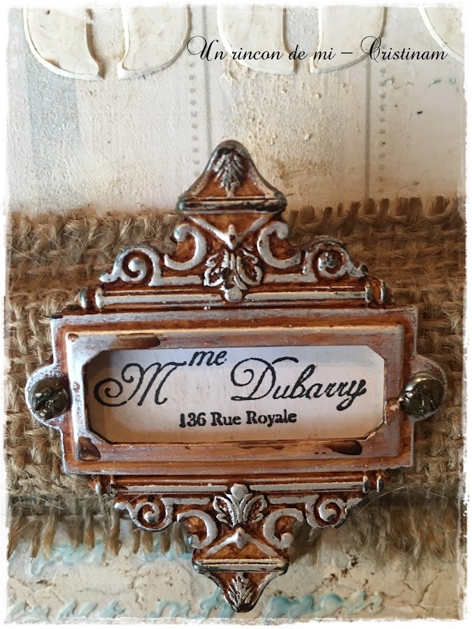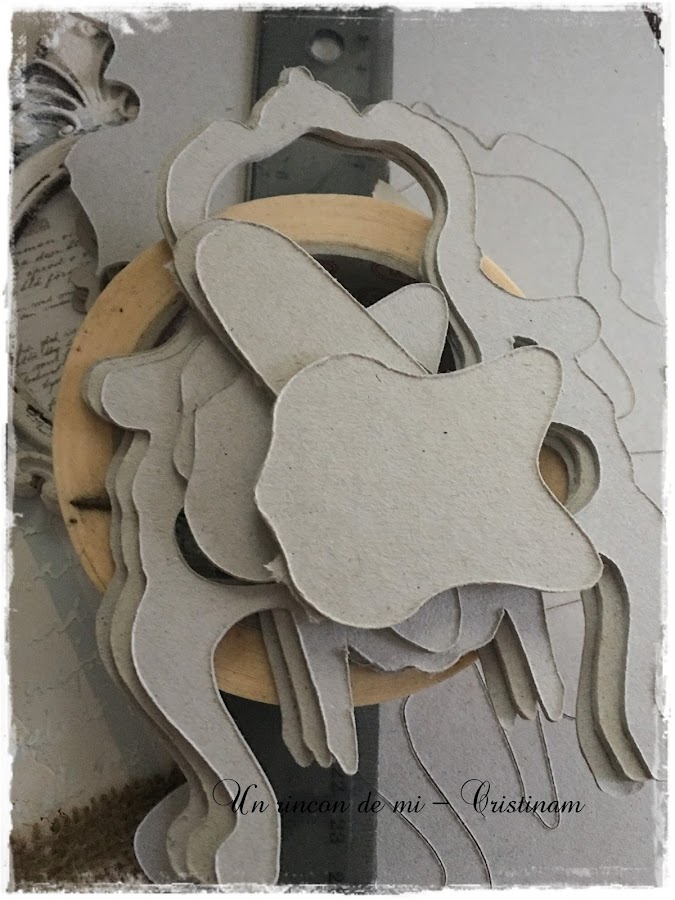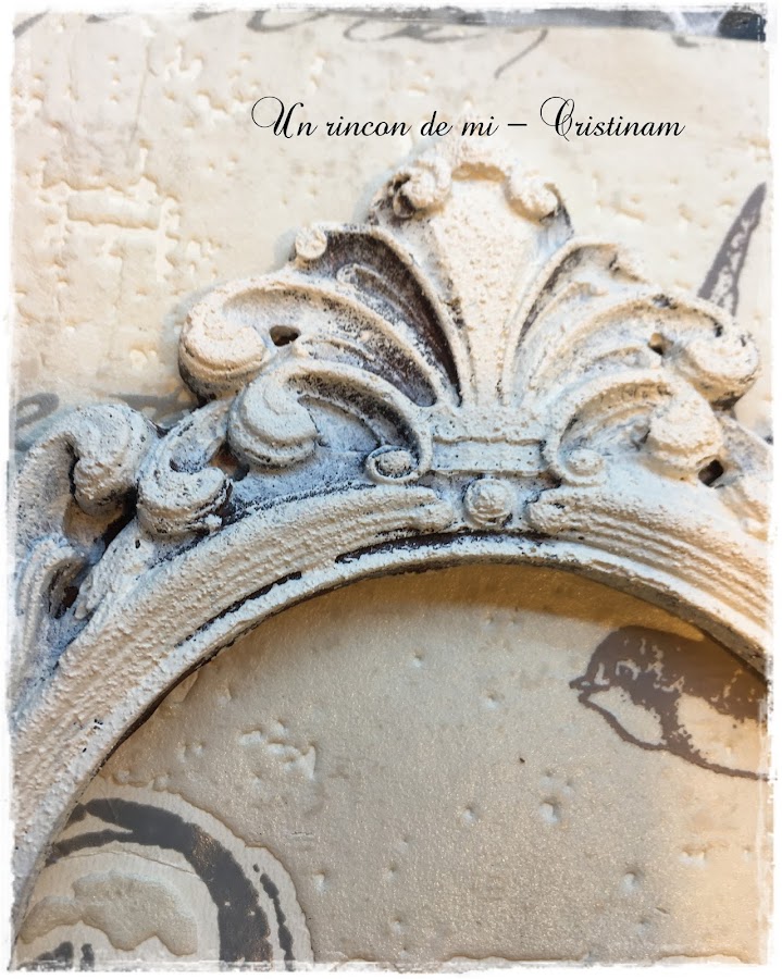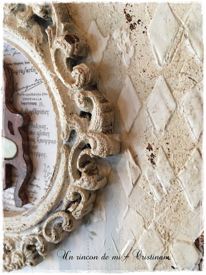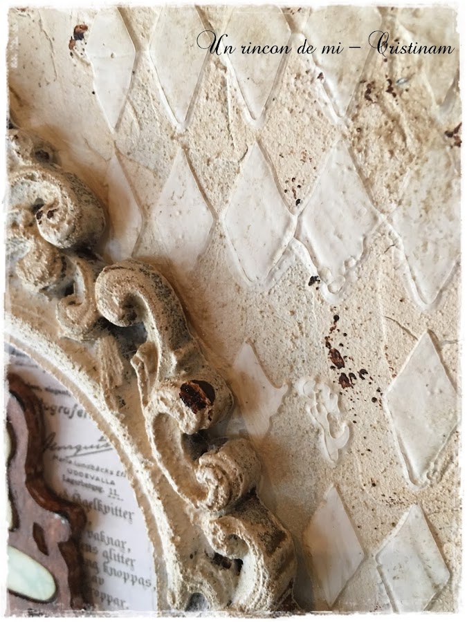Con otro molde que tengo desde hace tiempo he hecho esta pieza central a la que he puesto cera plateada para que resalte el labrado de la pieza.