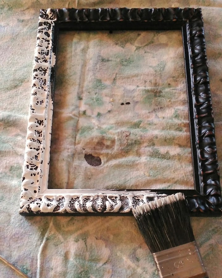 Con un marco y unas piedras de río como base, lo primero fue pintar el marco, ya que era negro y lo quería en blanco. Además de pintar, esta vez en negro, la parte trasera del marco.