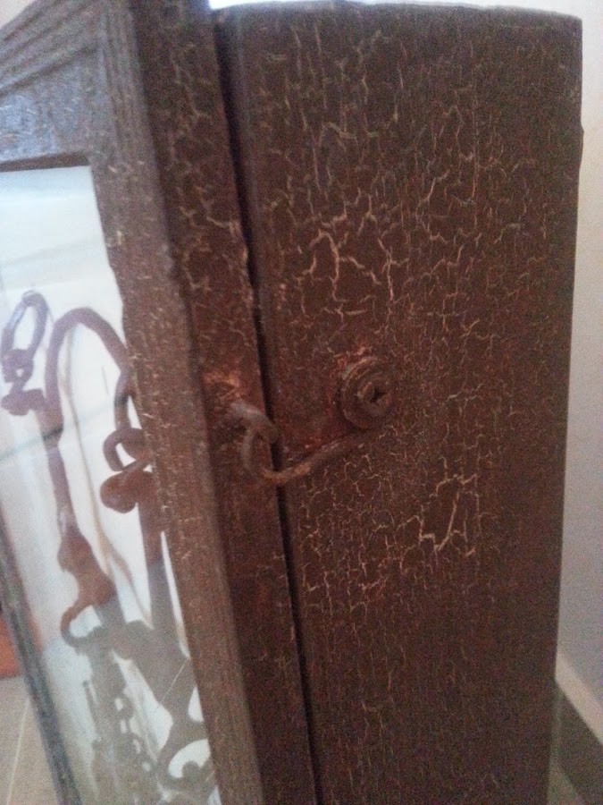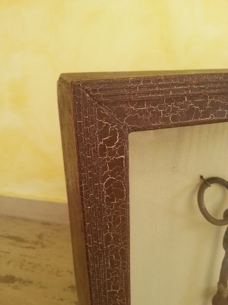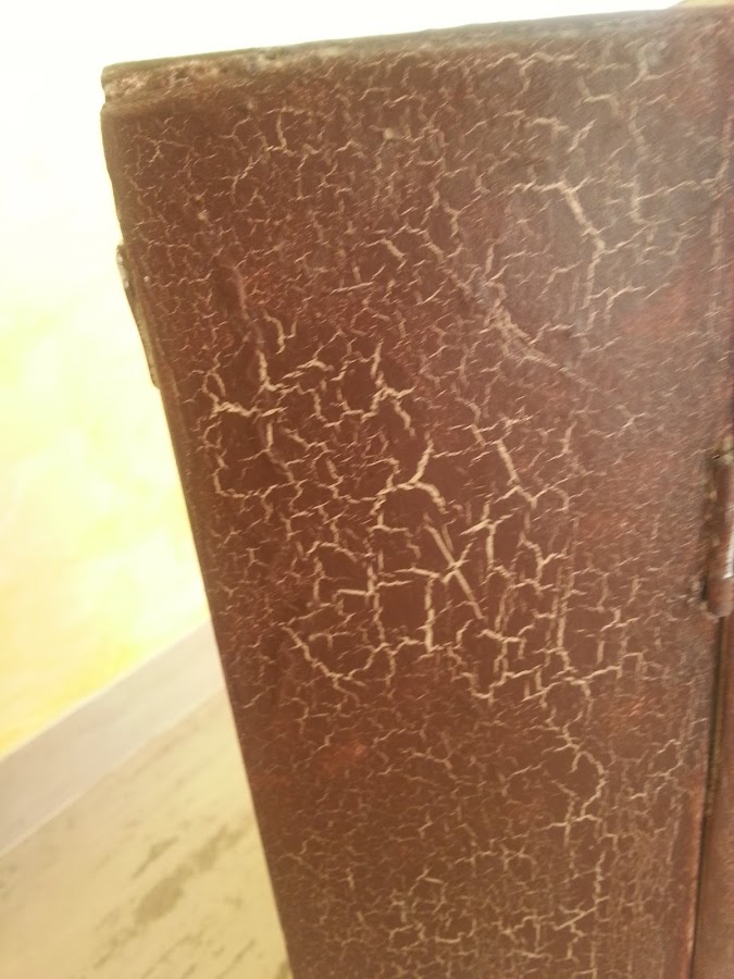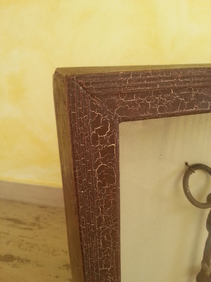 Una vez seca el craquelado, procedo a dar la pintura de color marrón, que se ve en la foto, depositando en pequeños golpes con una esponja.