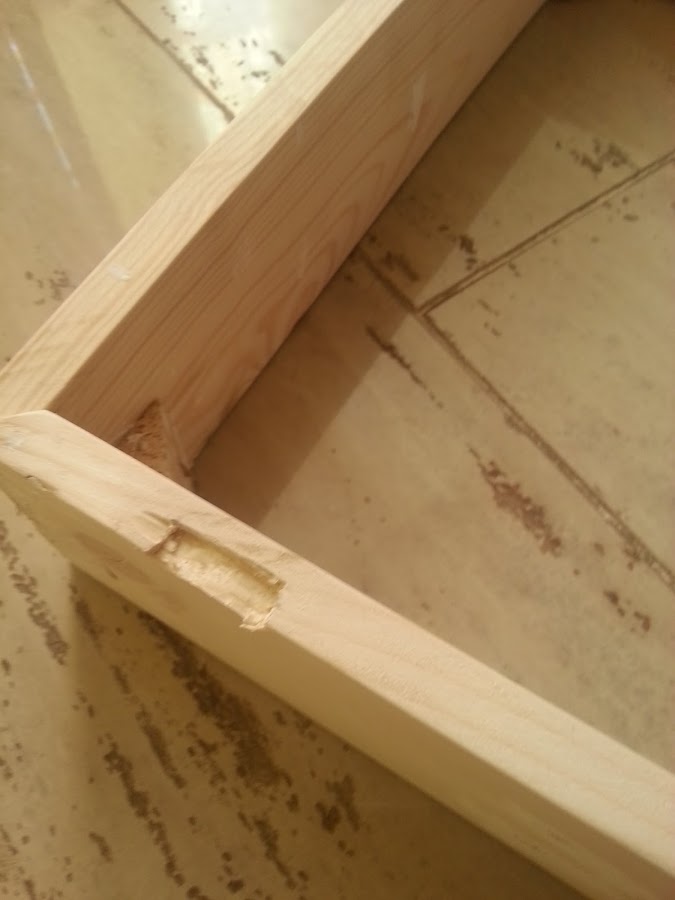 En esta foto se ve como quedan unidas con cola de carpintero las esquinas que corté en forma de inglete.