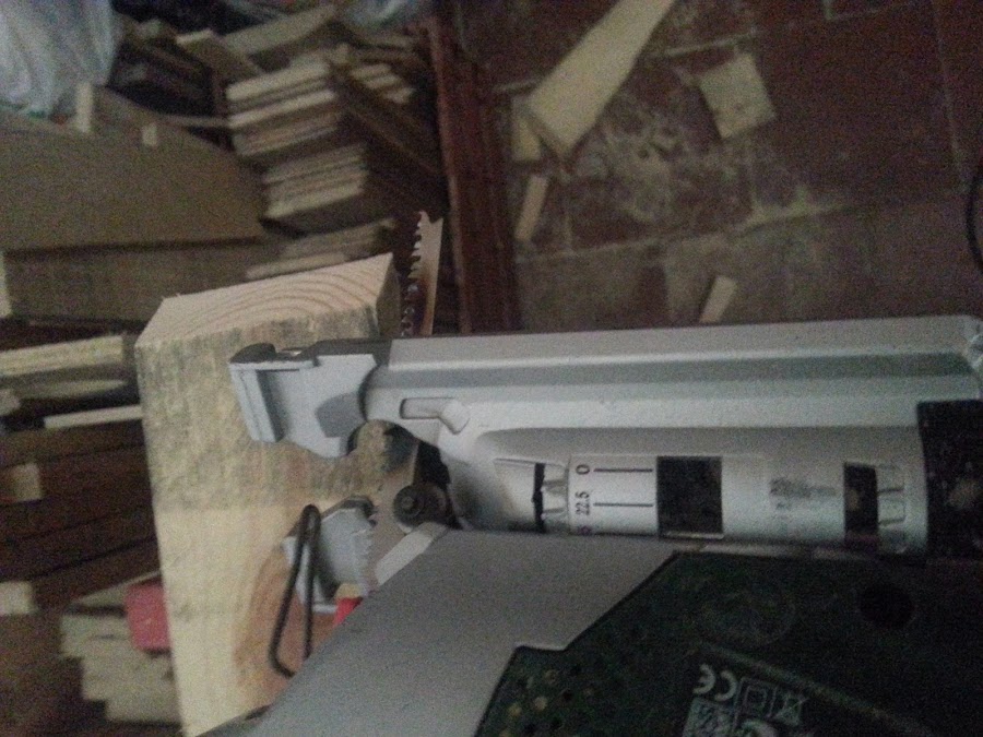 Todo el mundo que tiene sierra de calar, sabe que deslizando el patín de corte a tope puede hacer cortes de 45º, en inglete para conformar el cuadro expositor.