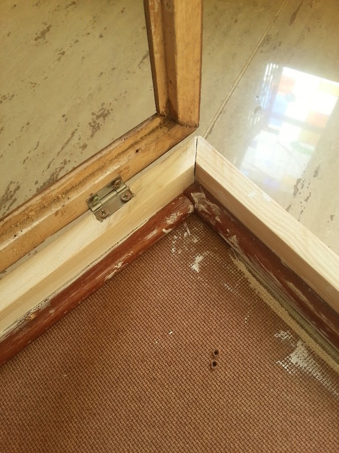 Como ya os digo no soy ninguna experta y los ingletes nunca me quedan perfectos, como en este caso de la foto,por lo que preparo una masilla a base de serrín tamizado y cola de carpintero.