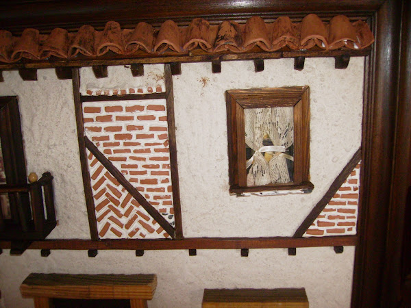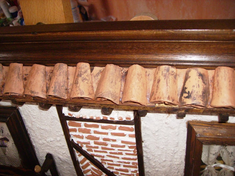 Las tejas las doy con cera y betún de judea, para que tengan mas realismo.