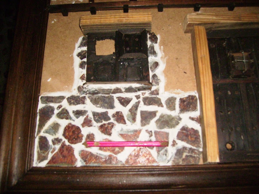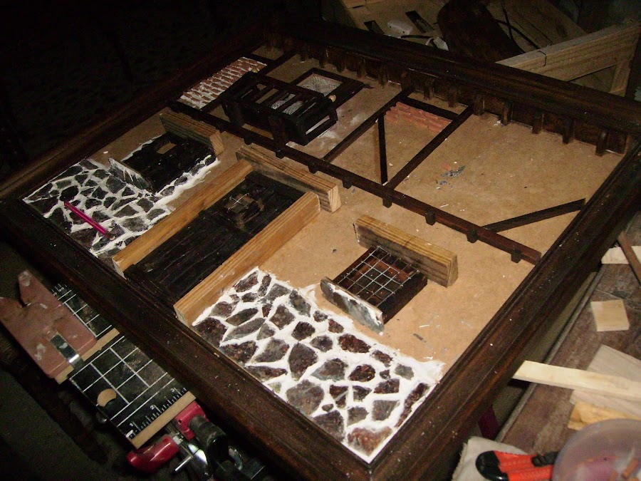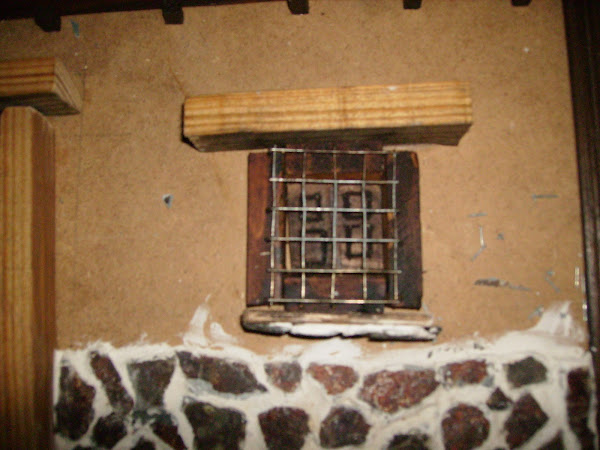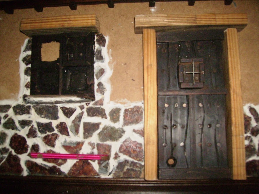 Una de las vertanas, se realiza como expliqué antes la puerta. El zócalo es pizarra de verdad y pegada con pegamento blanco de la cosntrucción.