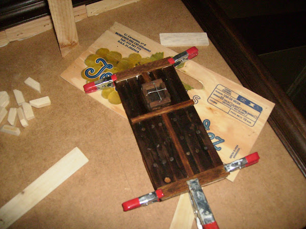 Con la madera de las cajas de la fruta, voy cortando y conformando lo que será la puerta de la fachada. Los clavos de la puerta son tachuelas de tapicero y están oxidadas. Y con unos alambres hago la verja de la ventanita de la puerta.