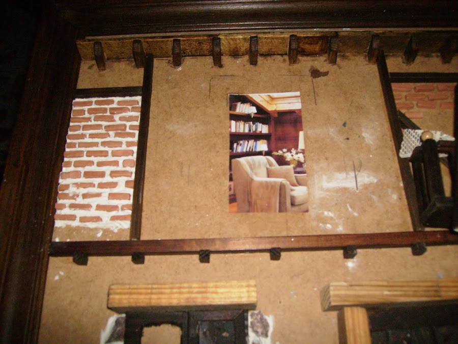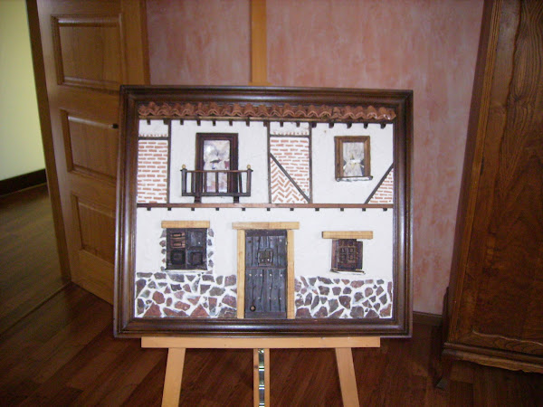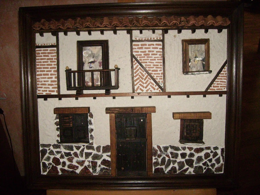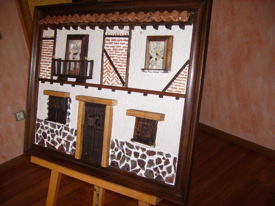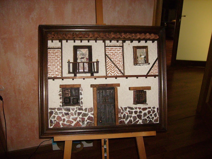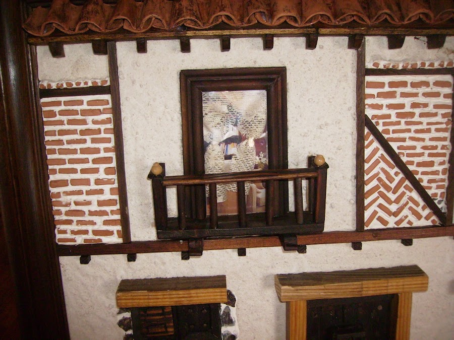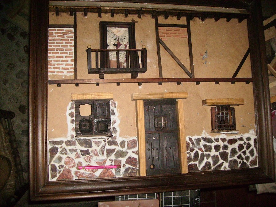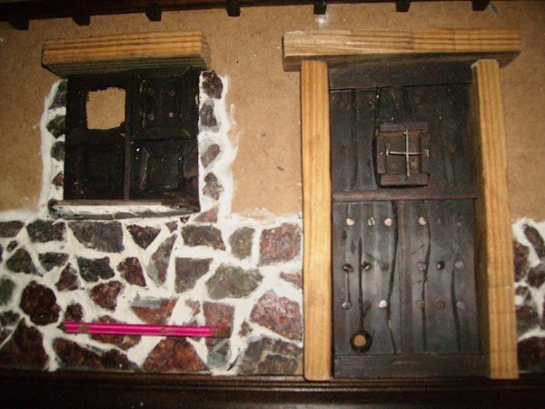 La textura de la fachada la hago poniendo tierra al pegamento de construcción, así tiene un aspecto de fachada autentica.