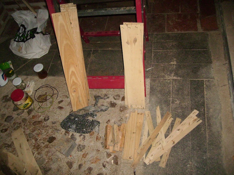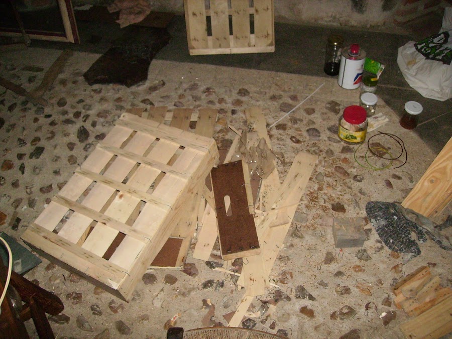 Desmontando la madera de las cajas de la fruta, tengo la madera para hacer tanto la puerta y las ventanas de esta fachada.