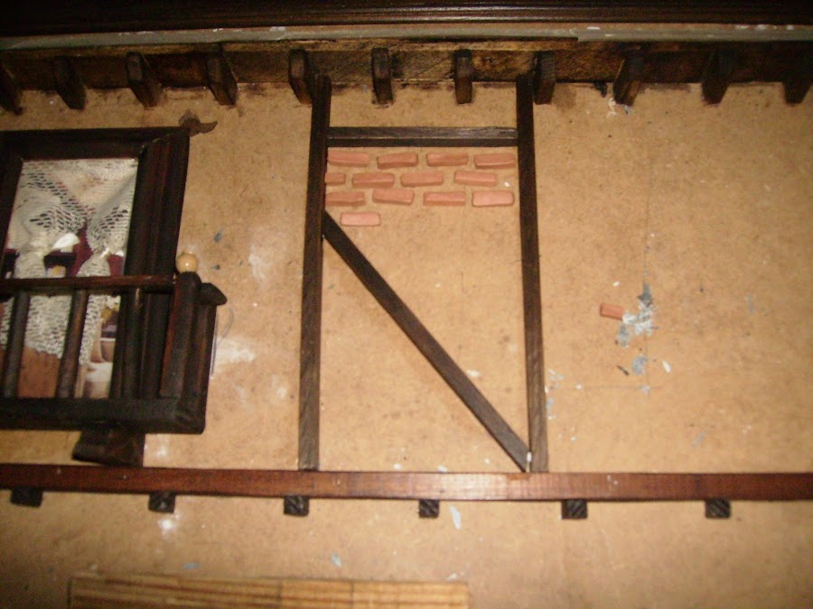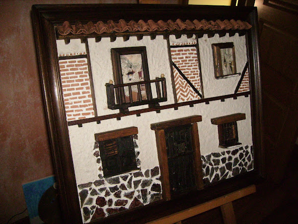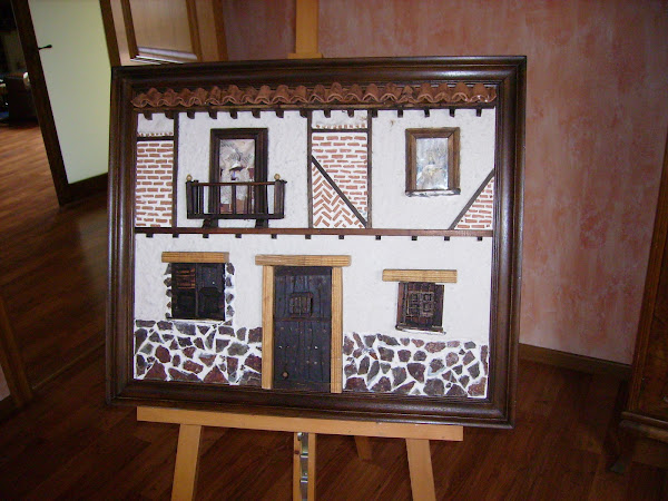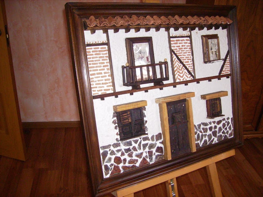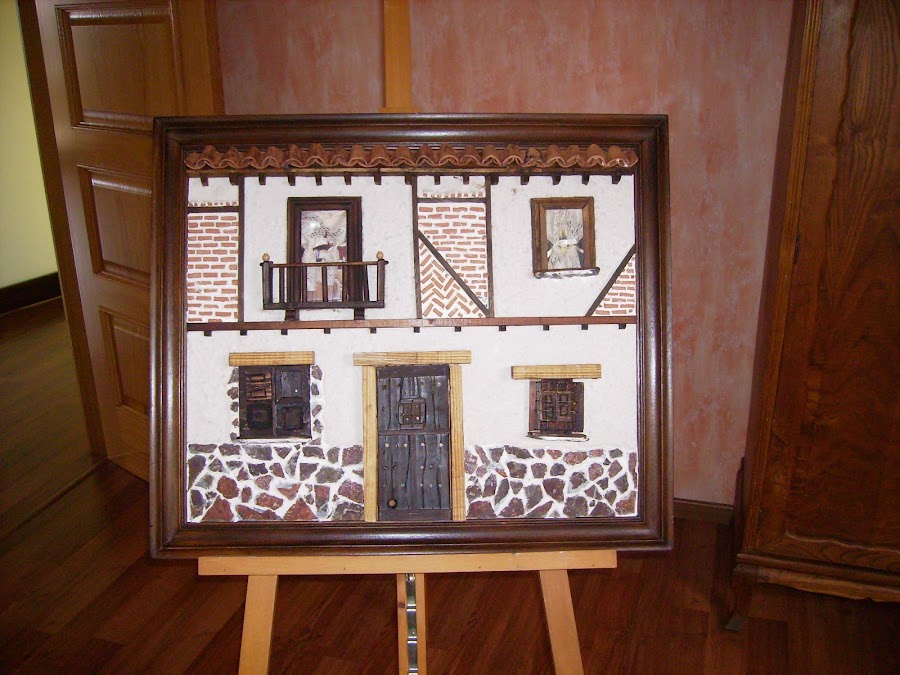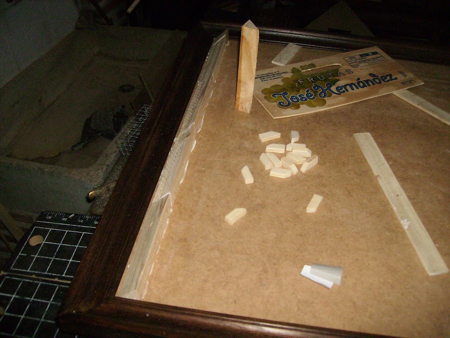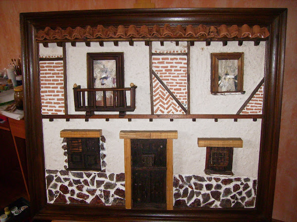 El empalizado de la fachada lo hago con cuadradillos de 10x10 teñidos y pegados al cuadro.