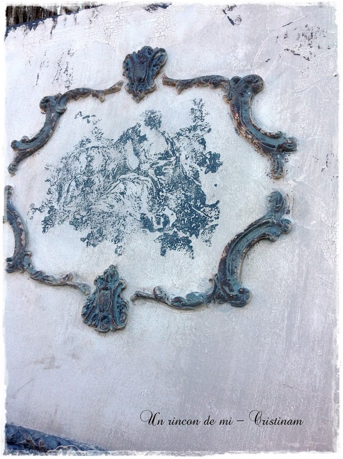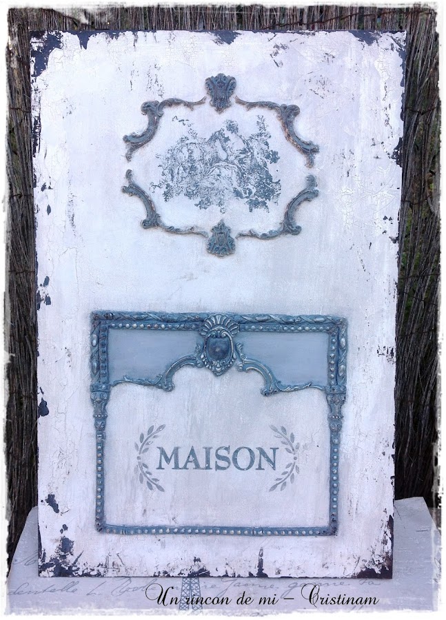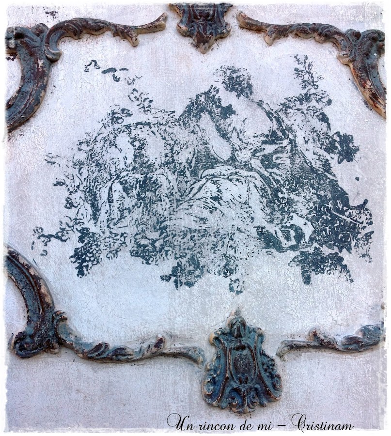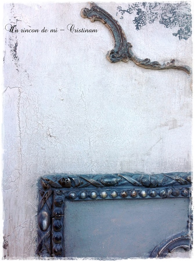 Sobre un lienzo tabla he querido realizar un cuadro estilo antiguo con molduras, decapados y distintas texturas.