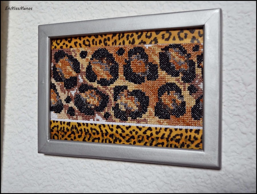 Hice una cenefa pequeñita con estampado de leopardo y me tiré taaaaantas horas bordando que el otro día al hacer limpieza y cansada de verla tirada por medio me dio mucha pena desaprovechar esas horas de trabajo...