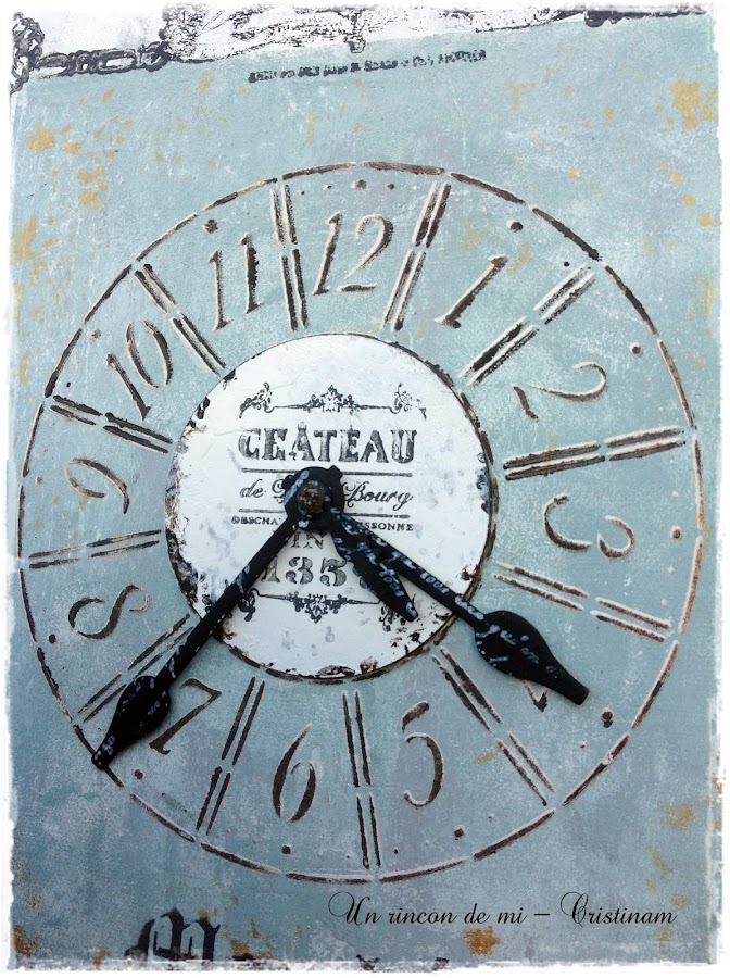 Se trata de un cuadro reloj decorado al estilo que tanto me gusta de las diseñadoras Iron Orchid Designs