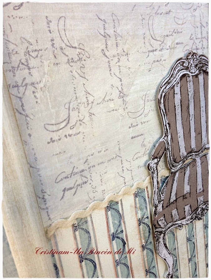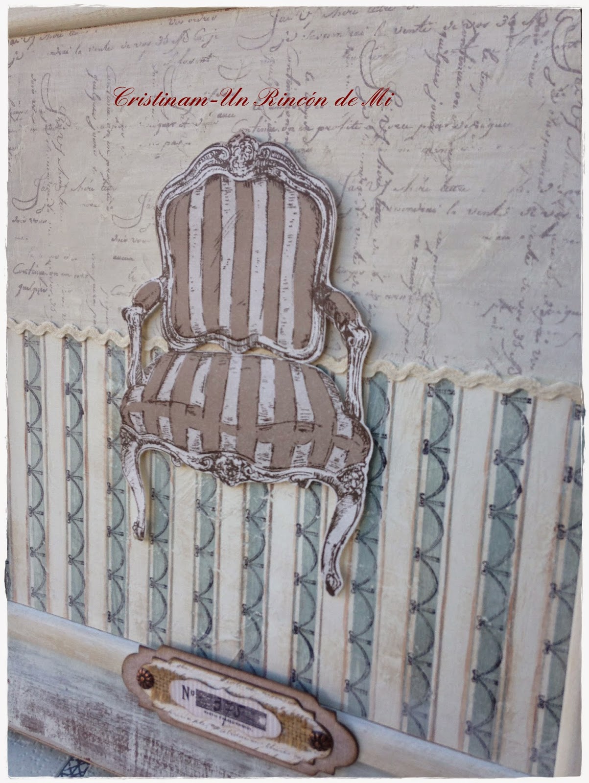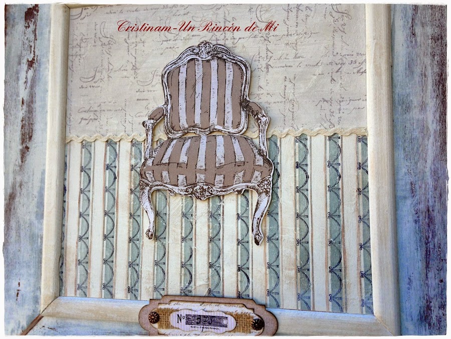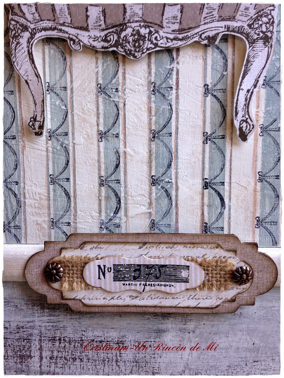 Con troqueles de Sizzix he realizado el letrero que os muestro... complemento con sellos y tela arpillera.