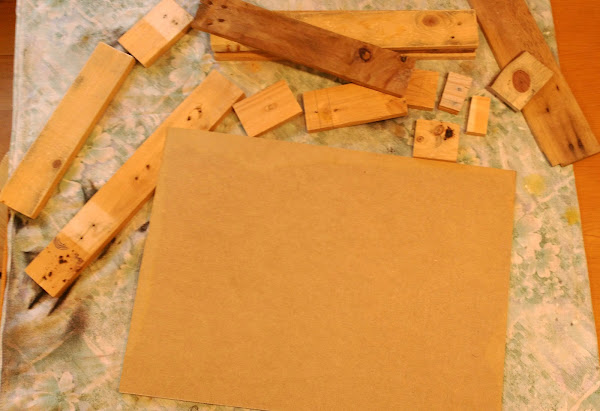 Lo primero fue decidir las medidas del cuadro y cortar la base a esa medida. Después adaptaría las lamas a la base, combinándolas y en algún caso cortándolas.