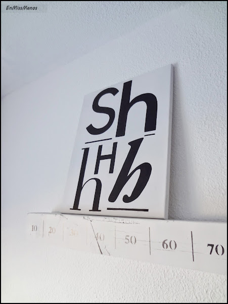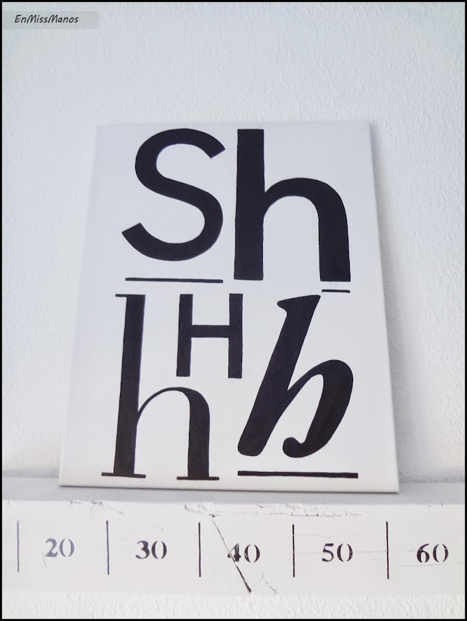 Y el otro cuadro de la habitación que al final sí que se ha quedado ahí es un lienzo que pinté gracias a una lámina muy nórdica y muy adecuada para la habitación, ya que invita al silencio con el "SHHH".