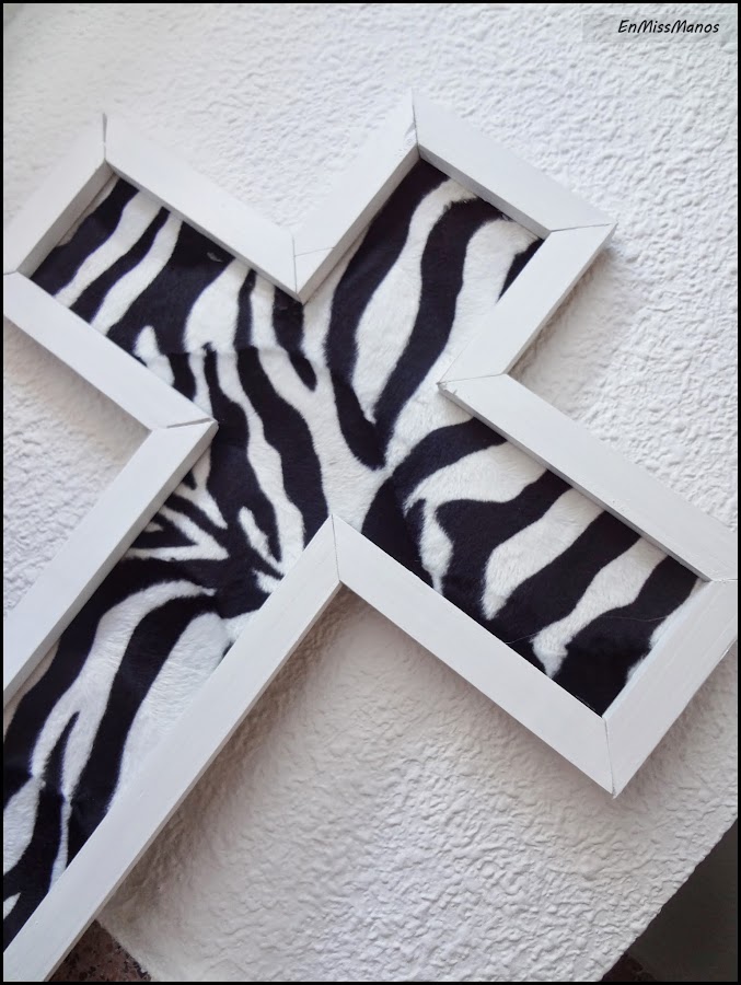 Y su sitio elegido al final ha sido el suelo!! Nada de estante en la habitación, jaja, quedaba muy grande y me daba un poco de yuyu tener una cruz encima de la cama, por mucho que fuera con estampado de cebra...así que al comedor a ido a parar!