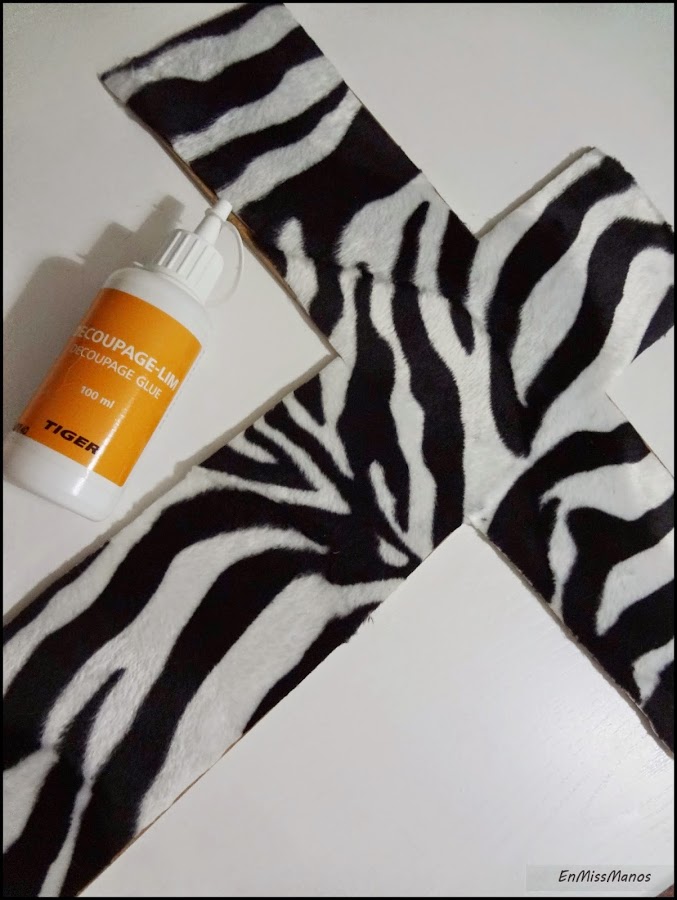 También tenía éstas maderitas finas de DM, y con la combinación de los listones de arriba y esto, se me ocurrió que podría hacer una cruz en blanco y negro.