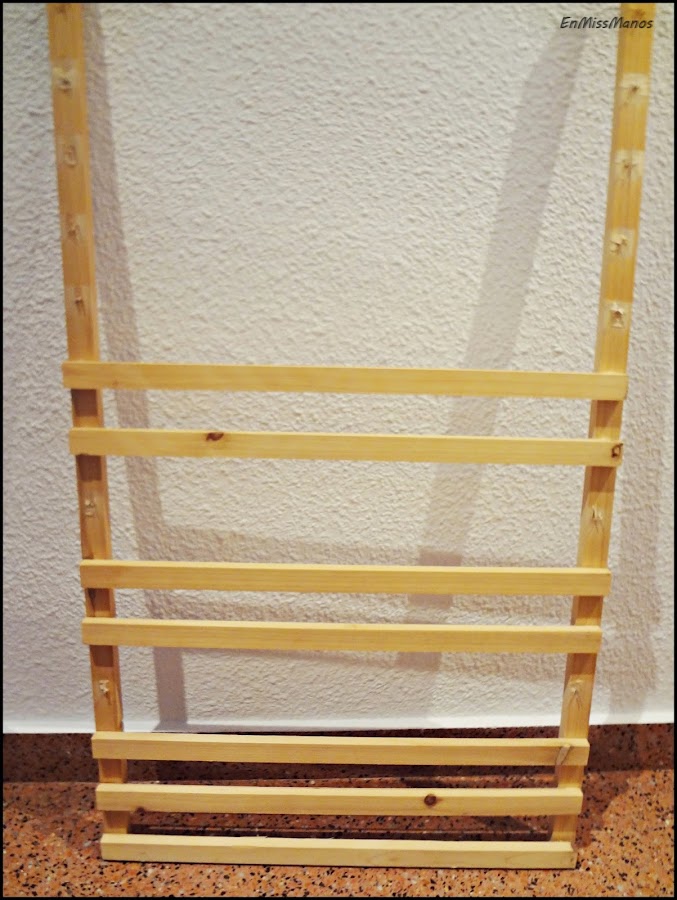 Una vez hecha la cruz con las maderas fui haciendo el marco con los listones hasta tener todo el alrededor.