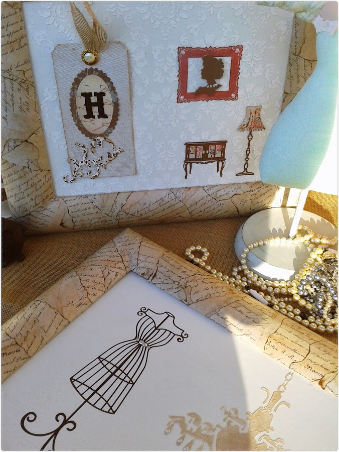 Los marcos de estos cuadros son preciosos , todo escritura recortada en trozos y pegada al marco.... !me encanta!!!!