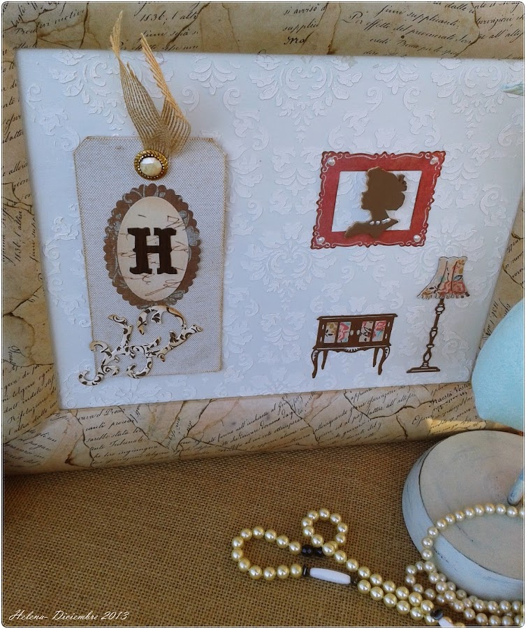 De nuevo en cartulina forrada con vinilo marrón hemos cortado la letra H , inicial de la dueña del cuadro....