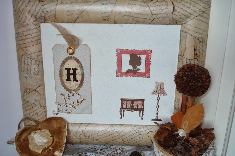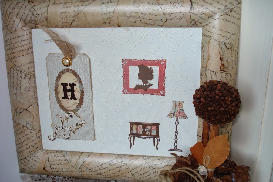 De nuevo en cartulina forrada con vinilo marrón hemos cortado la letra H , inicial de la dueña del cuadro....