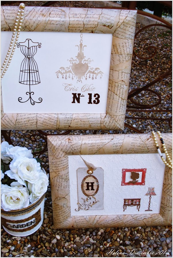 Los marcos de estos cuadros son preciosos , todo escritura recortada en trozos y pegada al marco.... !me encanta!!!!
