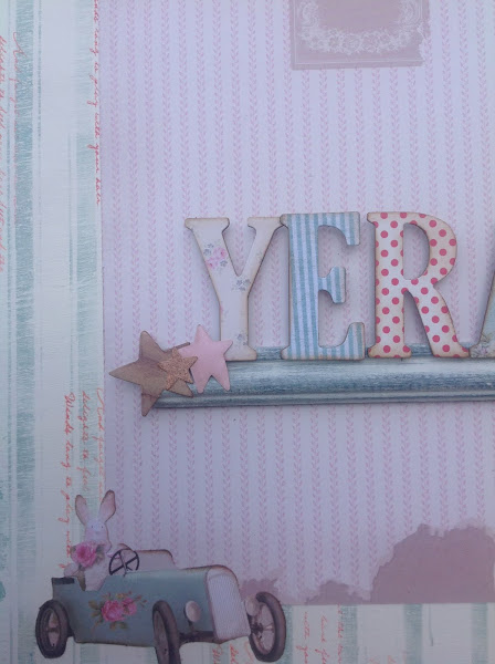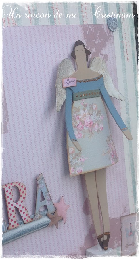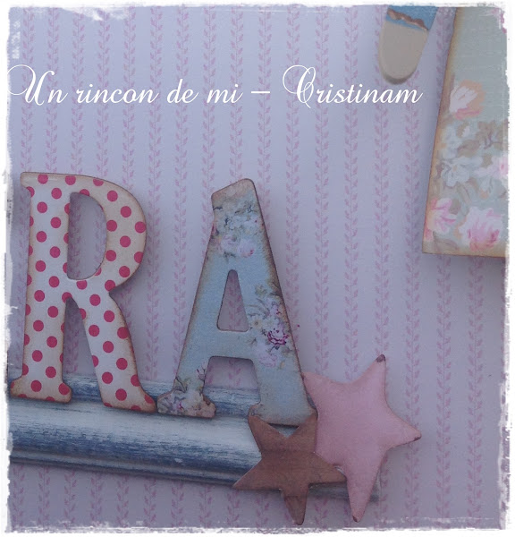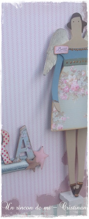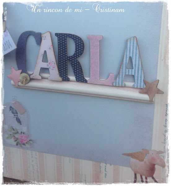 He puesto en cartón y papeles distintos el nombre de las niñas.. sobre una moldura para dar mas volumen .