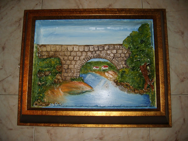 Este es otro cuadro de masa que tenia pendiente, el puente de piedra del pueblo de mi marido, como el queria.