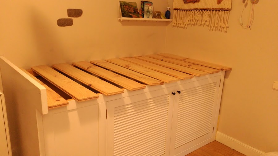 Renovación de somier con lamas a medida para mi hija. Para una mejor respiración del colchón.