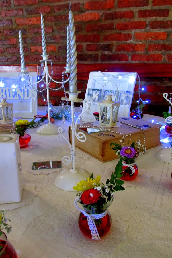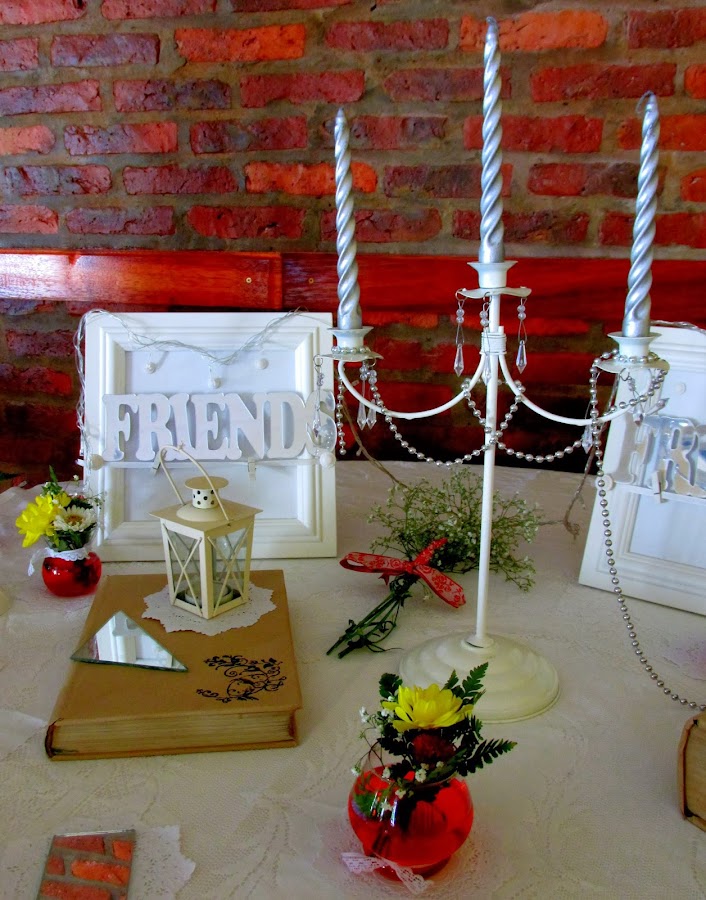 Aquí tenés la opción de alquilar las pizarras blancas de la foto, palabras espejo, los candelabros,ambientación, faroles y luces.
