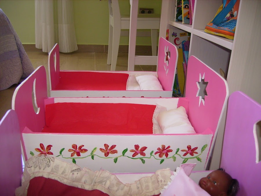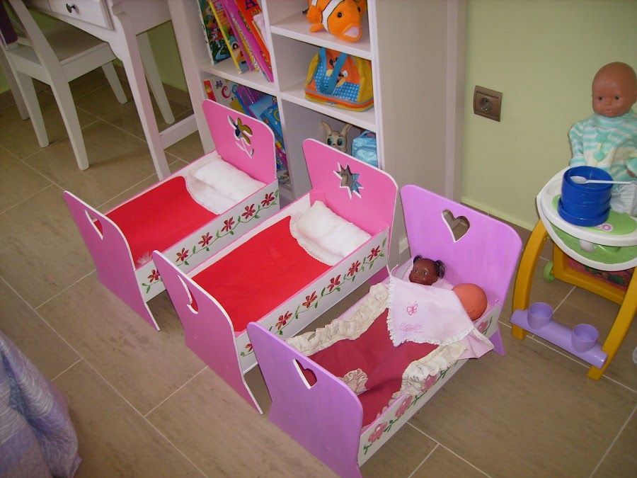 La cuna de mi hija fue la primera que hice y es distinta de la de sus primas, las otras dos las hice en serie y lo único que las diferencia es el dibujo que las hice con la caladora.