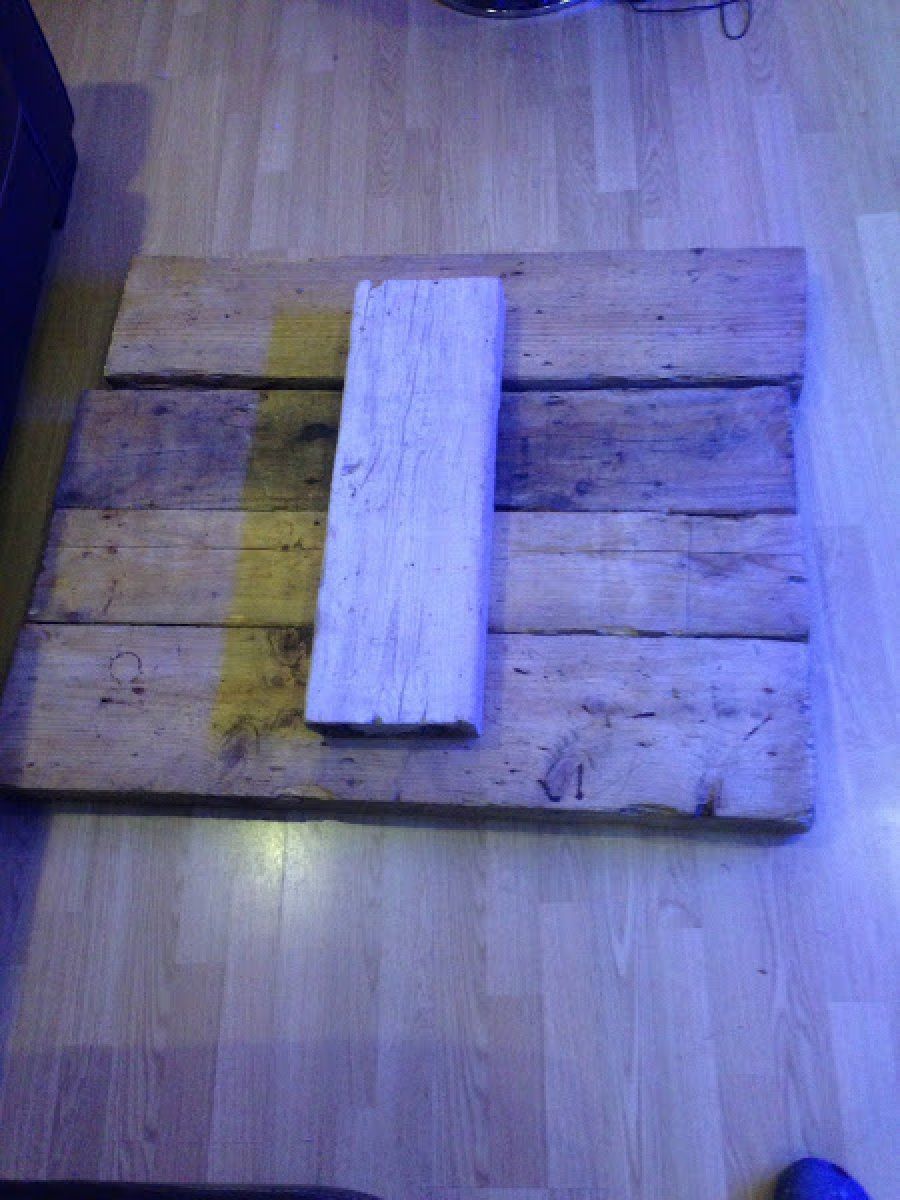 Nuestro amigo BuhardillaDeco tenía una base de cristal e inmediatamente supo que es lo que haría con ella y así empezó a crear una mesa para el salón con un palet que se ajustara a la medida del cristal, pero antes tuvo que darle varias lijadas para que se viera el color natural de la madera.