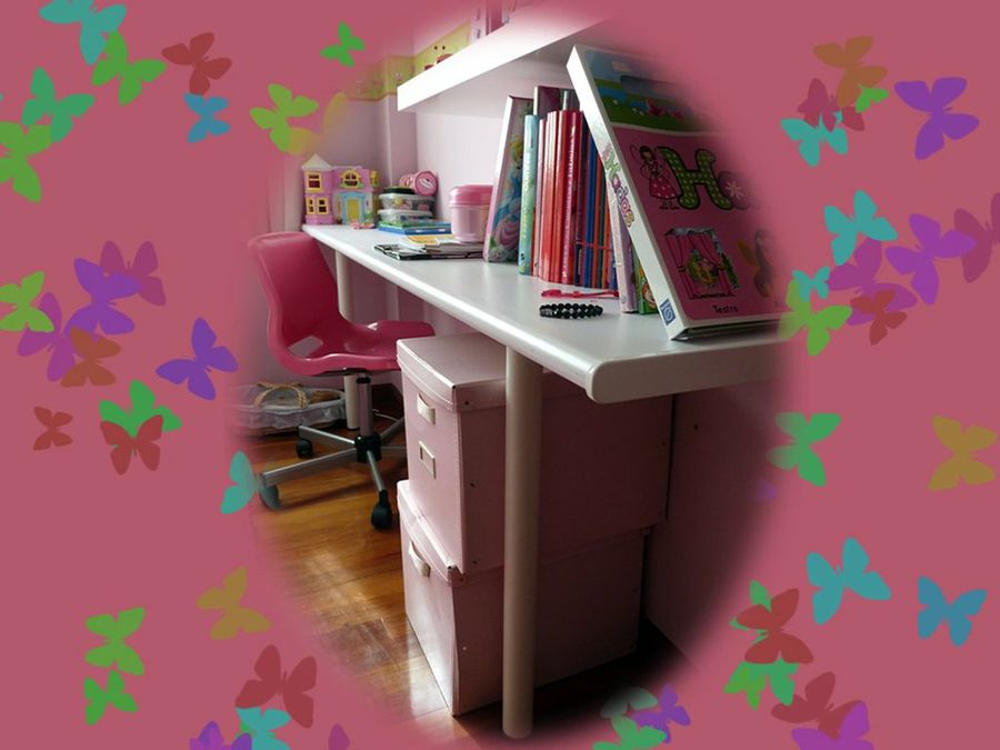 Para que la mayor de sus hijas pudiera dibujar, leer y hacer cómodamente las primeras fichas, nuestro amigo Luilli2010 diseñó este original escritorio, fabricado con una encimera de cocina.