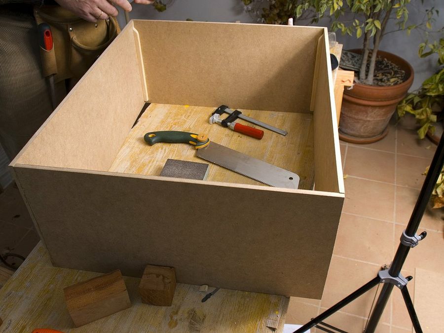 Con el procedimiento de los refuerzos internos en los ángulos, montamos rápidamente la estructura de la caja.