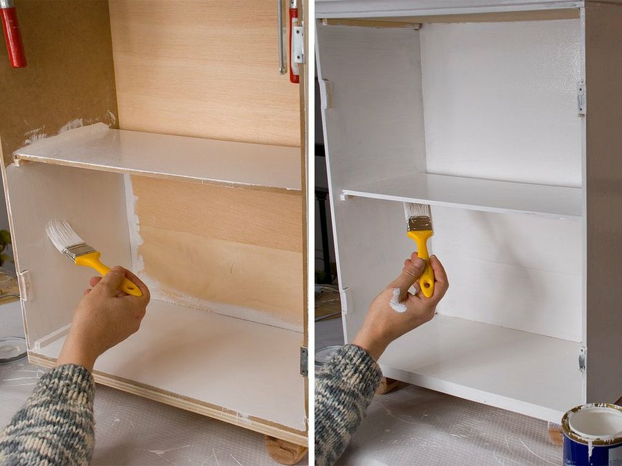 Nuestro roperito avanza correctamente, y llegamos a la última fase, en la que debemos poner el mayor esmero: la pintura. Comenzamos dando una imprimación selladora por dentro y por fuera a todo el mueble, exceptuando las patas.