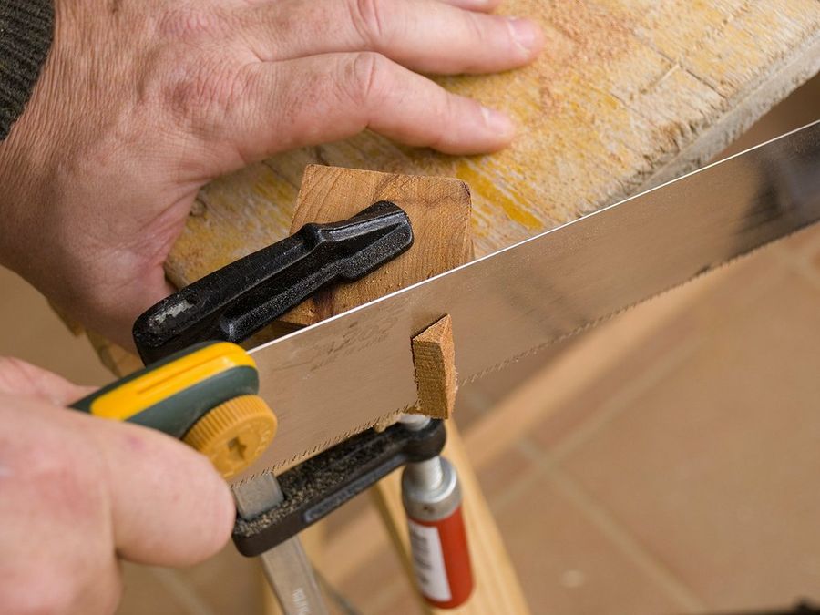 Después de achaflanar los cantos repetidas veces con la misma sierra, suavizamos el contorno con la escofina. Completamos el pulido con lija de grano fino.