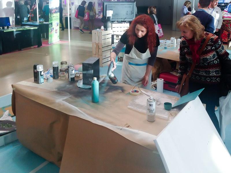 Como era de esperar, el público de Zaragoza también quiso participar en esta iniciativa. Además de probar la pintura en spray, pudieron contribuir aportando su granito de arena en la decorar objetos y muebles destinados a esta causa solidaria.