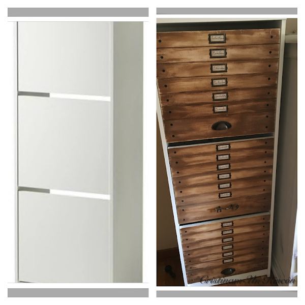 Hola Hoy os muestro como he transformado este zapatero comprado en Ikea de melanina blanco en un mueble imitando a madera teñida en este estilo vintage industrial que adoro. Lo primero que hice fue montar toda la estructura del mueble ya que esta parte no quería modificar. El tono blanco combina bien con el resto de muebles de la habitación de mi ingeniero mayor , que es donde voy a ubicar el ...