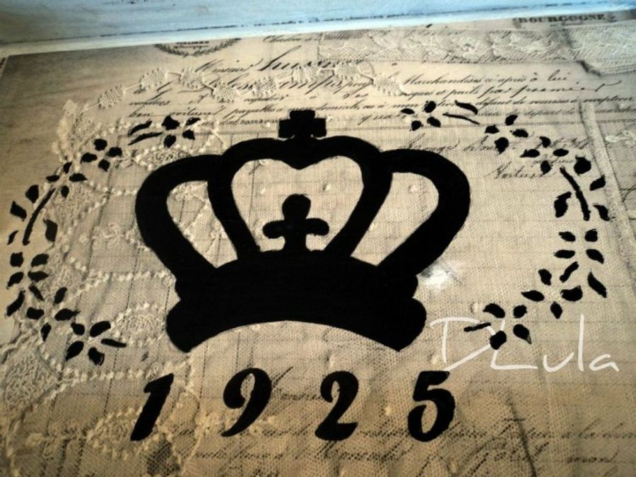 La artista siguió añadiendo otros adornos que la hicieran única: números, motivos con stencils, y rosas en decoupage.