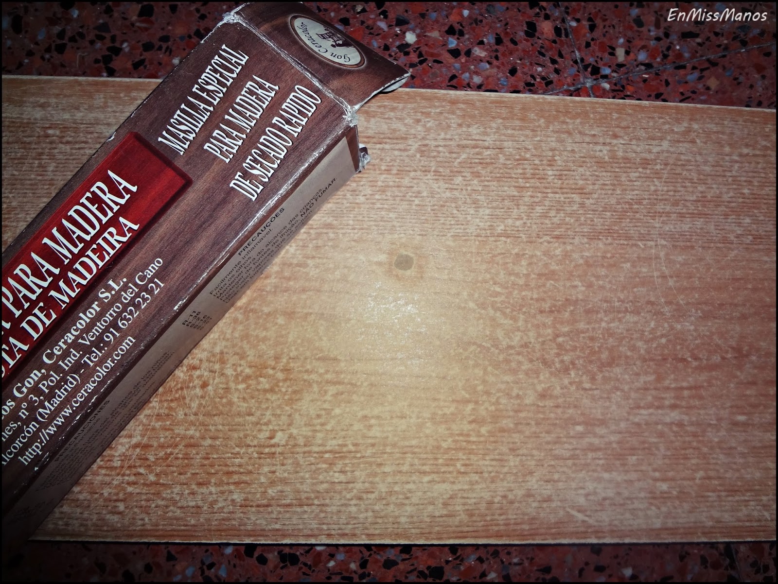 El segundo paso para la elaboración de mi cartel de Coca-Cola fue lijar el tablero y tapar el agujero con masilla.