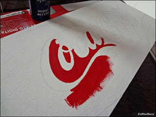 Y este es el resultado una vez pintado...Iba a hacer las letras con plantilla pero creo que ya me he cansado de cortar plantillas de acetato para hacerlo, me dejaba media mano en el cúter para que saliera bien...El pintar a mano cuesta más y se tarda mucho más tiempo, pero los resultados son mejores y mi mano no queda dolorida!!