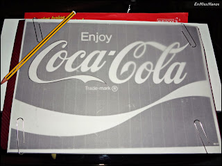 Para la base de mi cartel de Coca-Cola usé un tablero de melamina que encontré y que estaba nuevo y reluciente.
